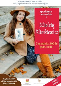 Jeśli chcesz poznać autorkę osobiście i wysłuchać jej historii z pierwszej ręki, przyjdź koniecznie na spotkanie autorskie we wtorek 2 grudnia o godzinie 18 do czytelni (I piętro) Miejskiej Biblioteki Publicznej w Białej Podlaskiej, ul. Warszawska 12a. Wstęp bezpłatny.