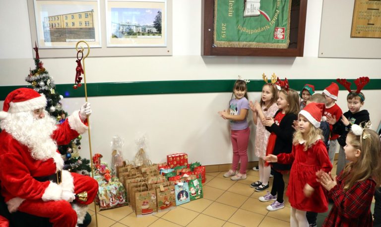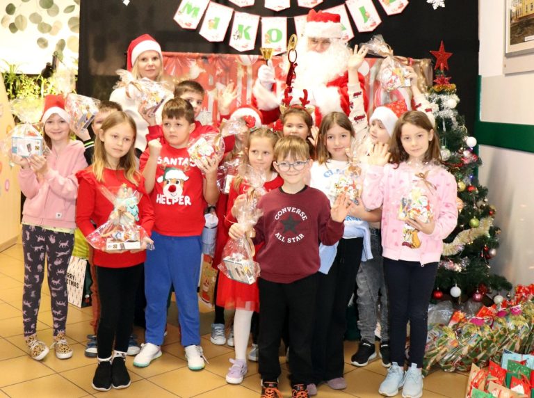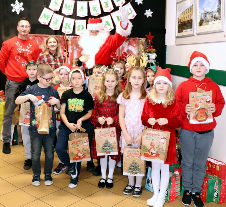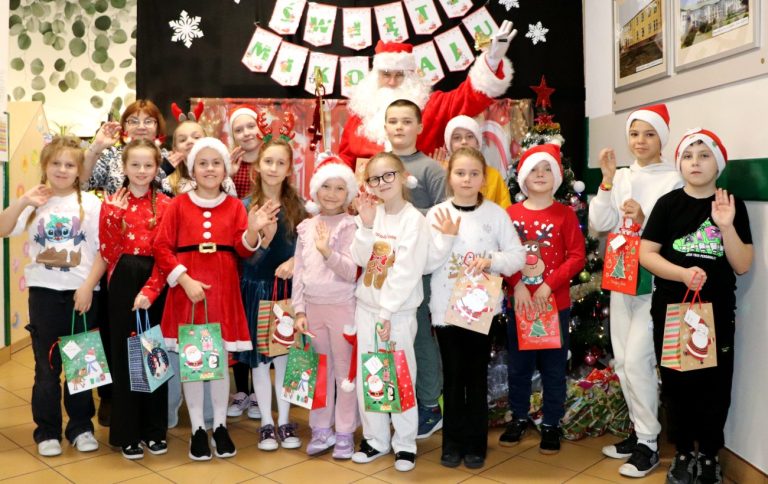 Dzieci z niecierpliwością czekały na ten szczególny moment. Do szkoły z workami pełnymi prezentów przybył najprawdziwszy Mikołaj, gotowy obdarować każdego od serca. Dzieci z klasy I-III z radością zaprosiły gościa oraz dyrekcję szkoły – Teresę Kusiak i Iwonę Jarmoszewicz – na wspólny koncert piosenek zimowo-mikołajkowych. Uczniowie wystąpili z pięknymi utworami, prezentując swoje talenty i entuzjazm, a wszystko to w świątecznej atmosferze, która rozgrzała serca wszystkich zgromadzonych.